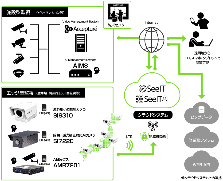 SeeITに繋がることで、多地点カメラの統合管理、遠隔からの閲覧、映像分析まで、いつでも本格的なクラウド監視をご利用いただけます。