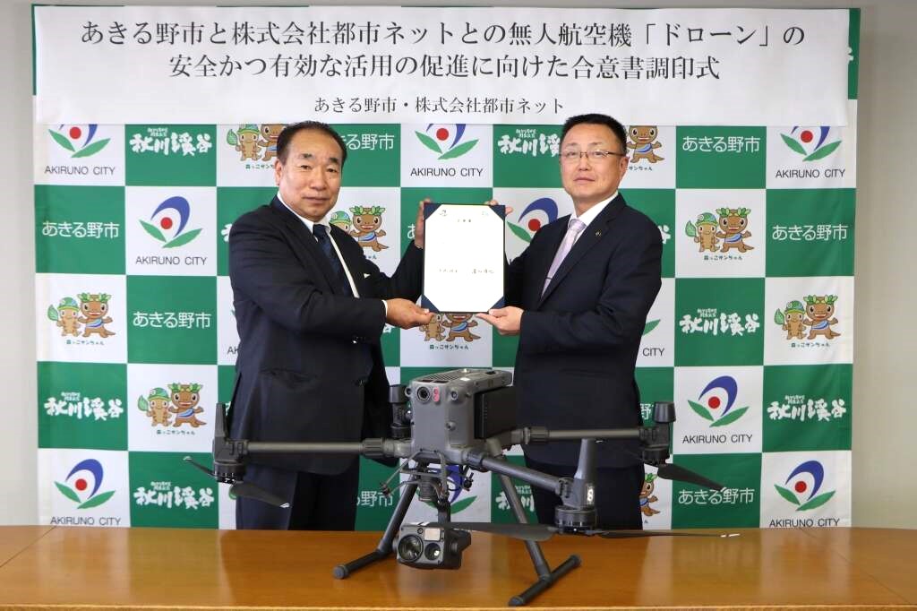 NEWS新着情報 あきる野市と「ドローン」の活用促進に関する合意書を締結しました 2024.01.29 1月22日(月曜日)、東京都あきる野市と、無人航空機「ドローン」の安全かつ有効な活用の促進に向けた合意書調印式が実施されました。 今後は、安全な飛行のための研修や普及活動、公共施設の調査・検査などにおいてドローンの活用を進めてまいりします。 詳細についてはこちら あきる野市 ホームページはこちら