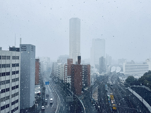 無事会社に出社してからは、都会に降る雪の光景に少年のように目を輝かせながら嬉々として写真を撮る私。