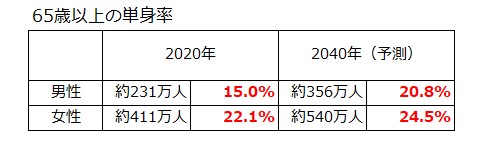 以下の表は、高齢者の単身世帯率を示したものです(※1)。
