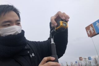 現場に到着すると雨も少し小降りになっており、弊社のスタッフが走行状況の記録用カメラを道路脇に設置していました。